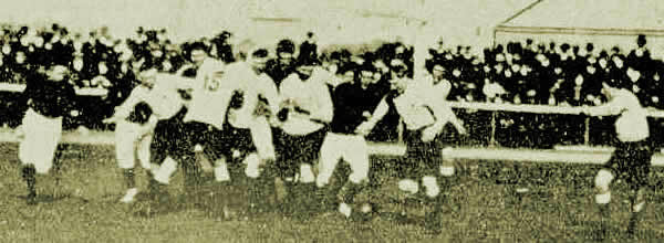 Action from NSW v ‘Goldfields’ (maroon jerseys) in August 1907.